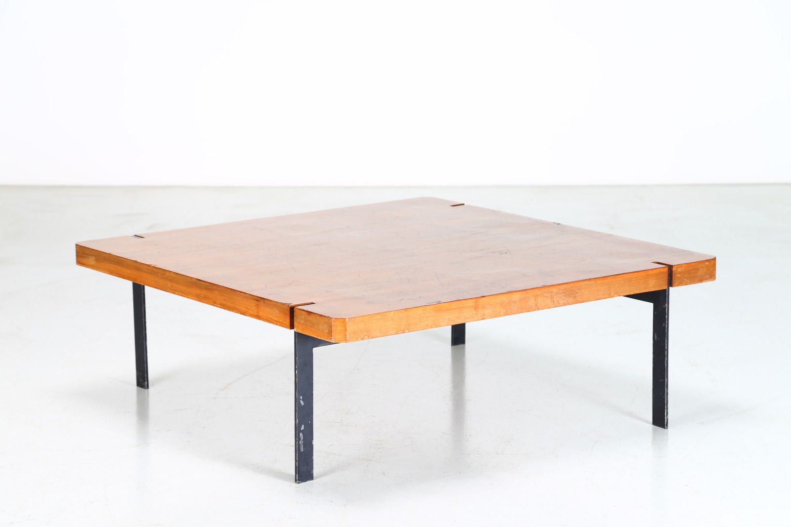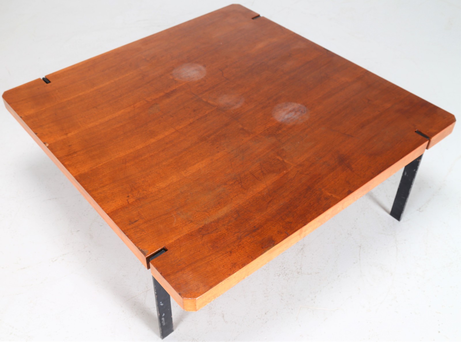 RINALDI GASTONE Coffee table, variant T906. . Cm 100,00 x 35,00 x 100,00. Walnut and lacquered metal.