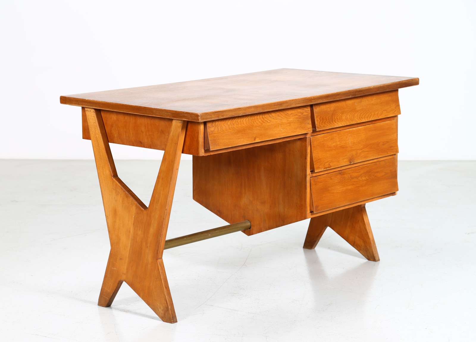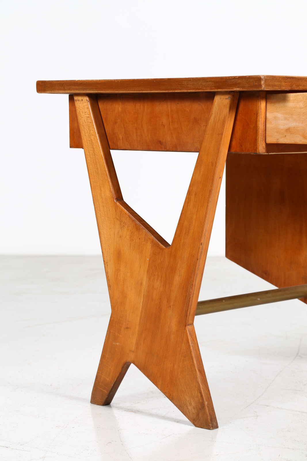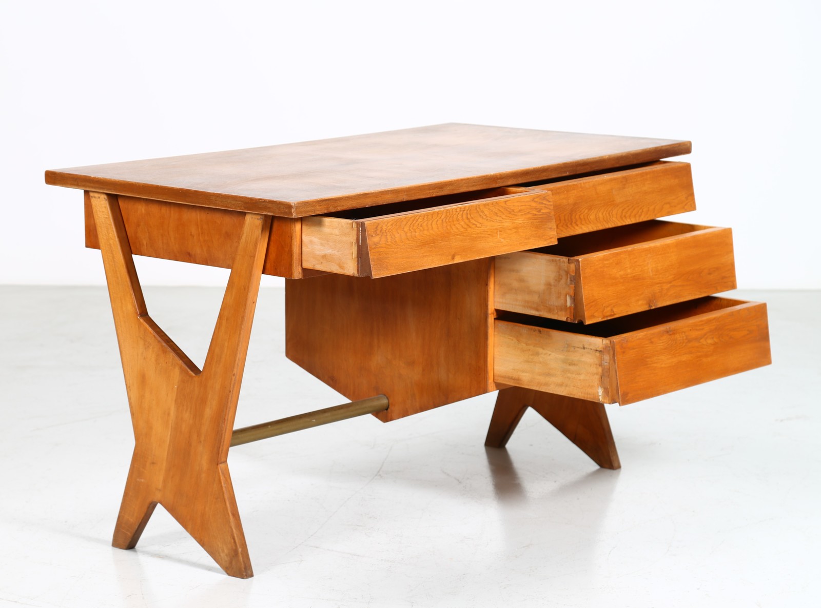 ANGELI, OLIVIERI, DE CARLI Attributed. 50s desk. . Cm 135,00 x 79,00 x 70,50. Wood and brass