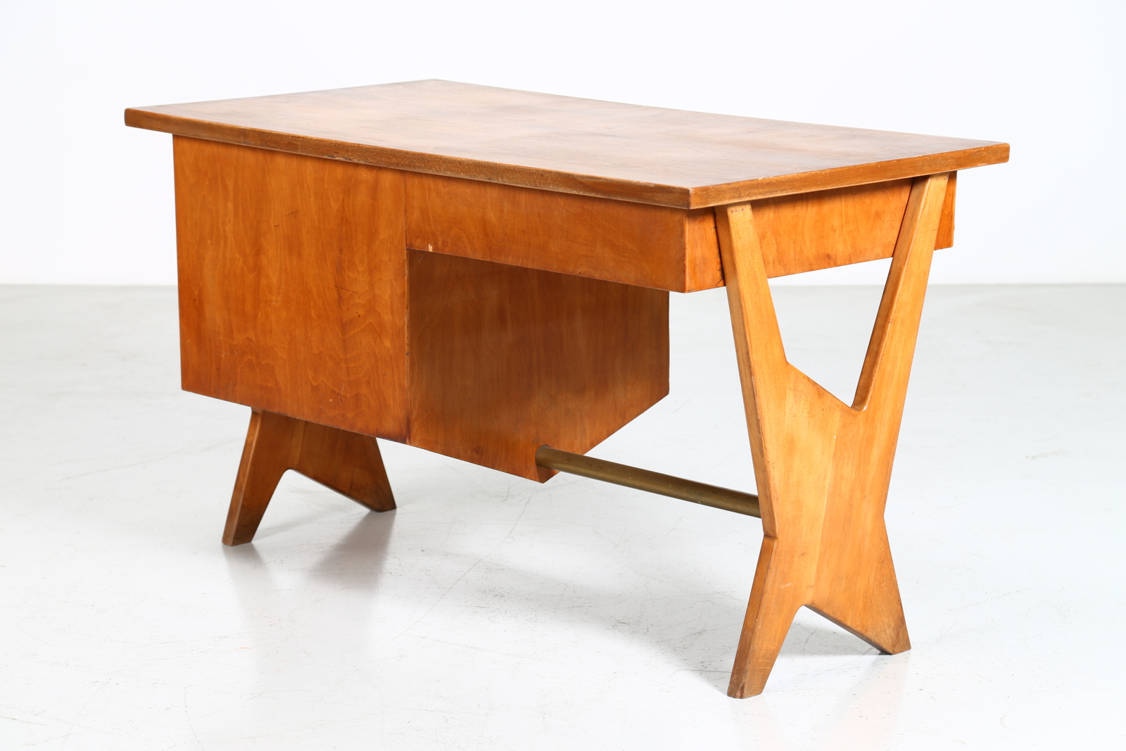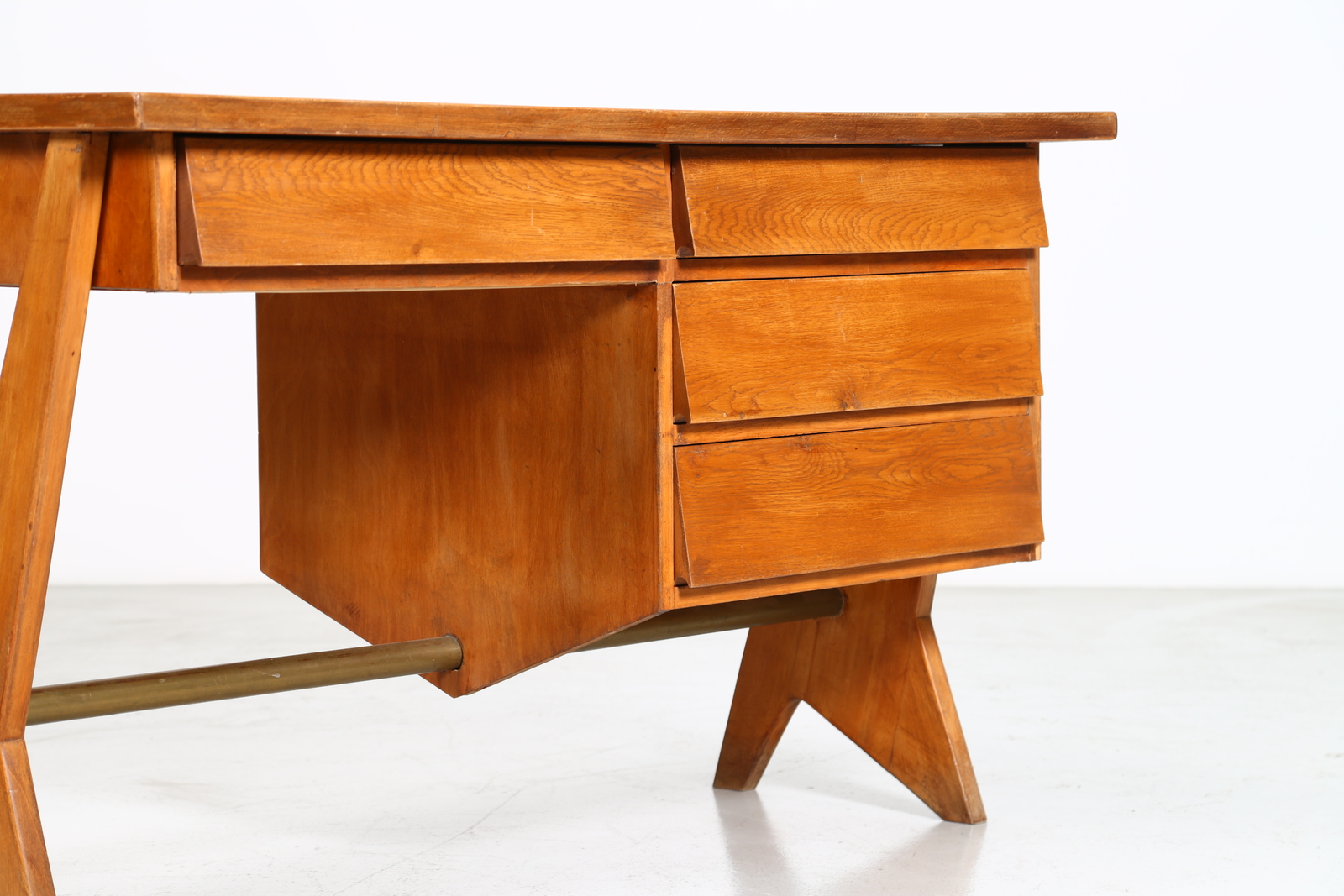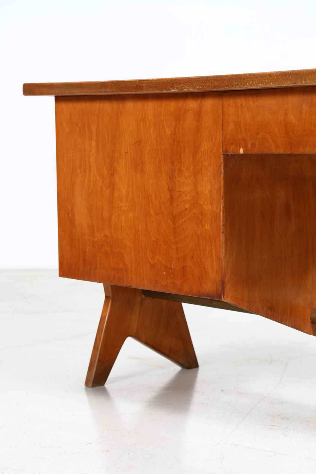 ANGELI, OLIVIERI, DE CARLI Attributed. 50s desk. . Cm 135,00 x 79,00 x 70,50. Wood and brass