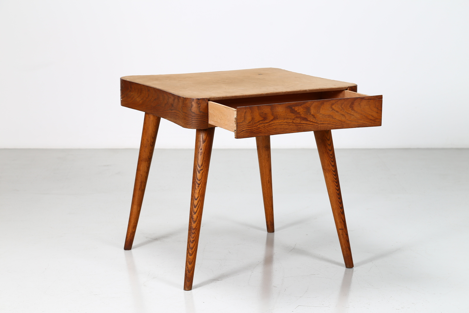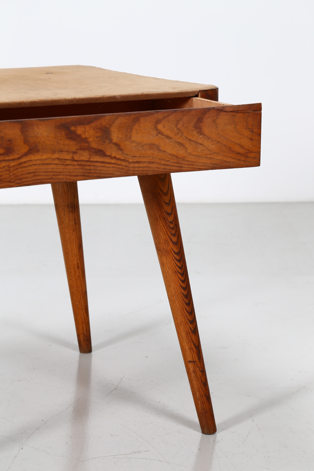 PONTI GIO' (1891 - 1979) Tavolo da gioco. -. Cm 81,00 x 80,00 x 81,00. Legno di rovere e tessuto, anni 50. Expertise a cura di Salvatore Licitra Archives Gio Ponti Milano.