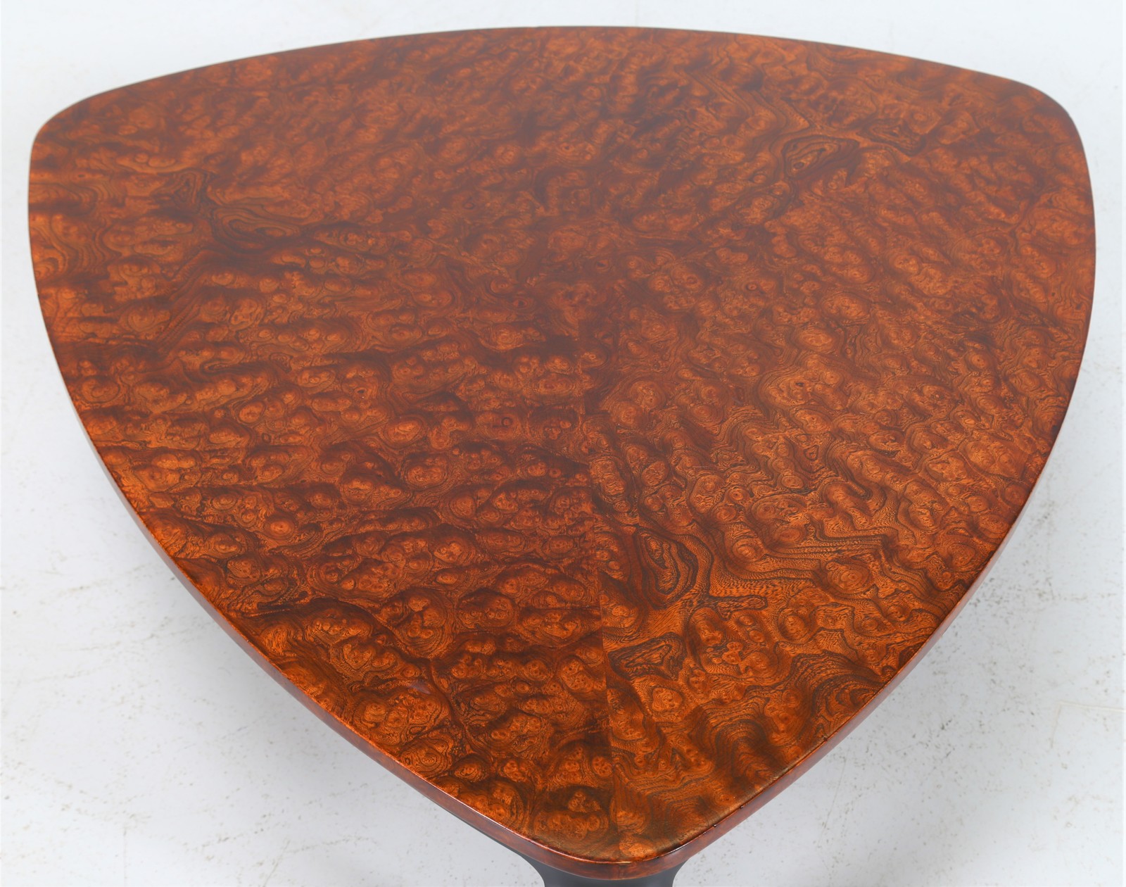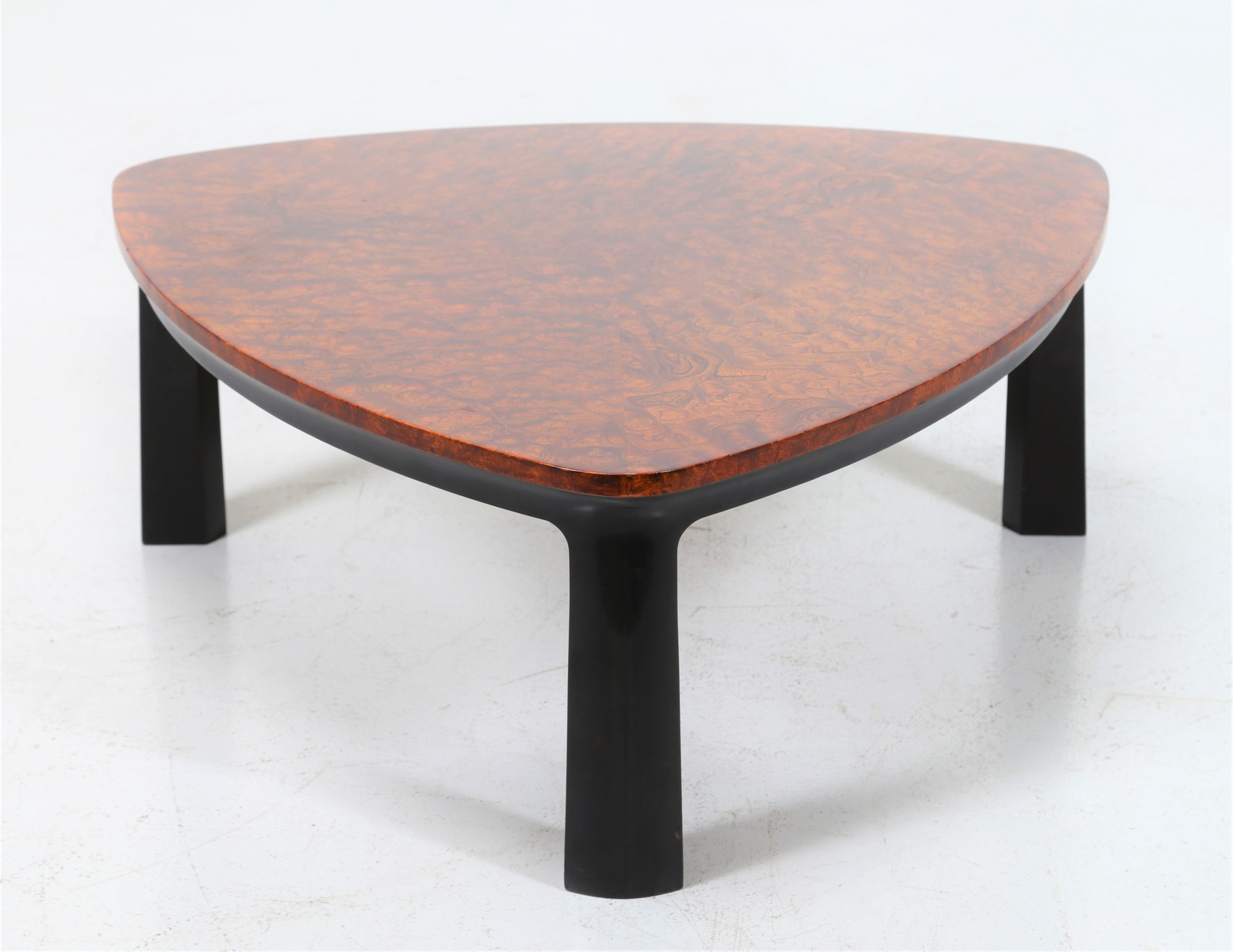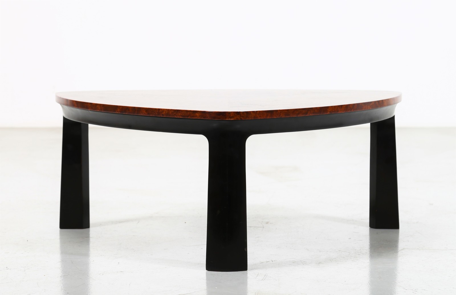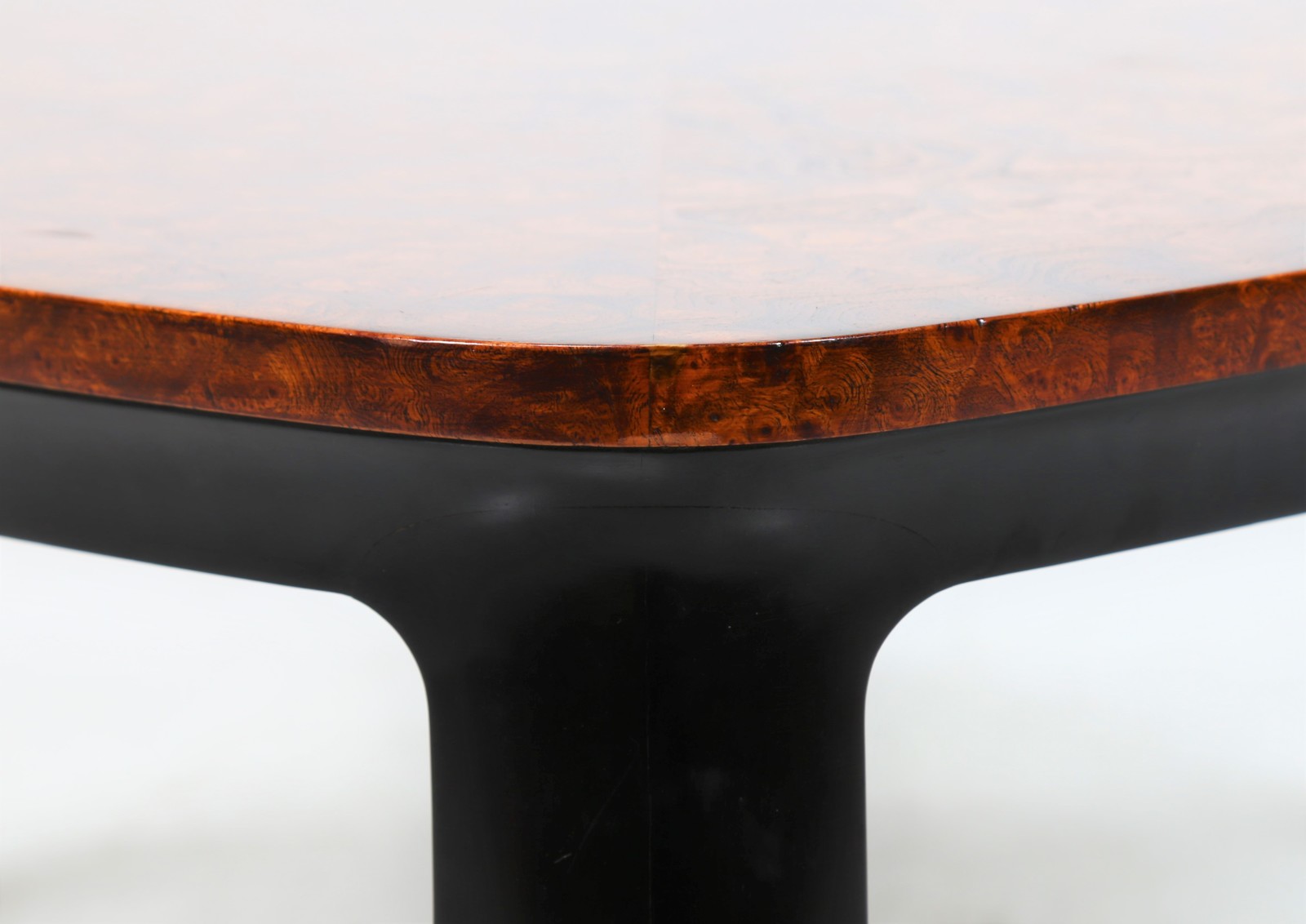 EDWARD WORMLEY Tavolino da caffè. -. Cm 83,00 x 33,50 x 83,00. Legno laccato con top in radica di olmo dei Carpazi, anni 60. Etichetta originale presente. collezione privata New York