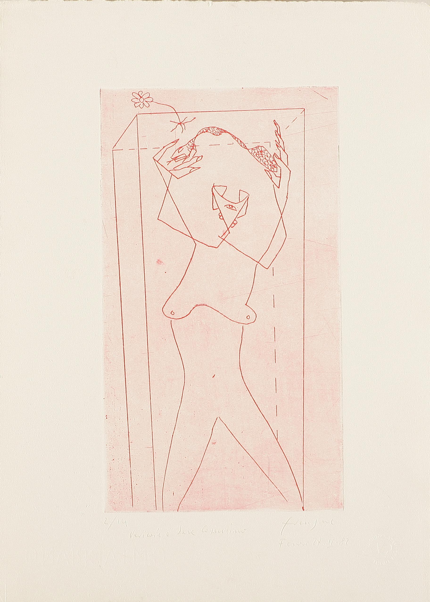 CONSAGRA PIETRO (1920 - 2005) Senza titolo. Incisione. Cm 25x34,5. Tir. 2/14 e dedica a matita in basso a sinistra. Timbro a secco Il cigno Stamperie d'Arte. Misure disegno cm 24x13.5. Firma a matita in basso a destra.