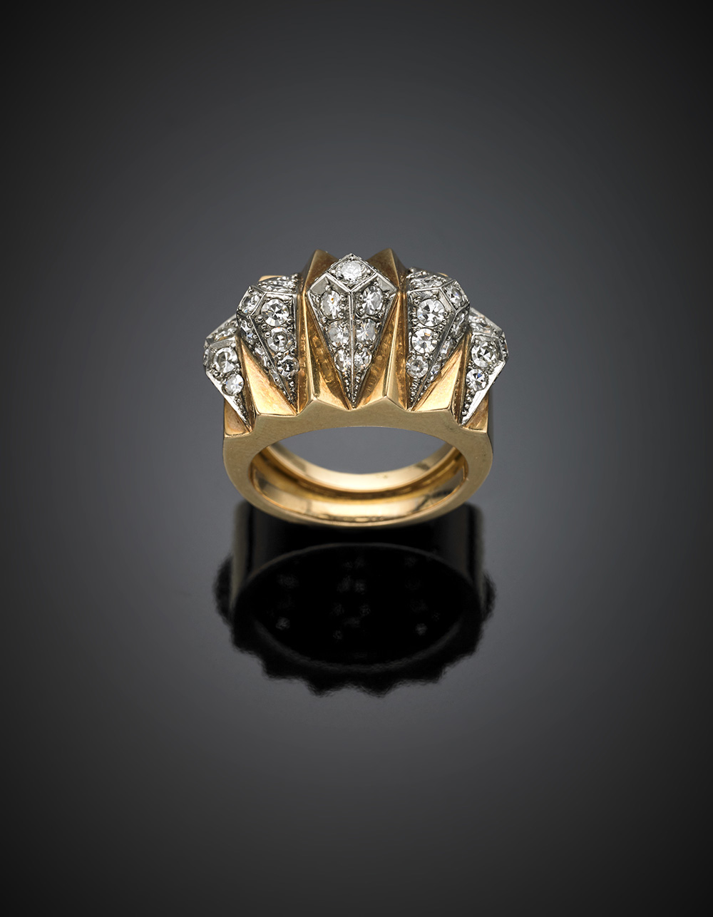 Yellow gold diamond shaped ring, in all ct. 1.30 circa g 10.29 size 9.5/49.5. Marked Made in france, 131/3, Sennet Frères Hong Kong.