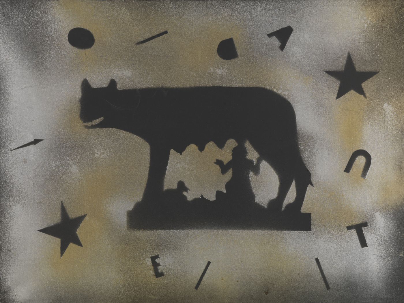 ANGELI FRANCO Roma 1935 - 1988 "La lupa di Roma" 1972/74 60x80 smalto su tela Opera firmata al retro Già Galleria Freeart, Torino (timbro al retro) Archivio Studio Soligo n. RMS747108010259 (autentica su fotografia)