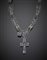 Blue and green sapphire white gold noose ringed necklace with cross pendant, g 120.39, length cm 69 circa.