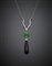White gold chain with a diamond central suspending a micro crystalline green quartz, diamond and onyx drop pendant, g 12.21, length cm 48 circa.