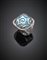 White gold turquoise paste ring, diamond and coral details, g 19.86 size 16/56. Marked 2297 MI. With original guarantee