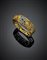 Bracciale rigido in oro giallo 585/1000 con opali e rubini sintetici, dettagli in smalto nero, g 37,06, diam. cm 6,3.