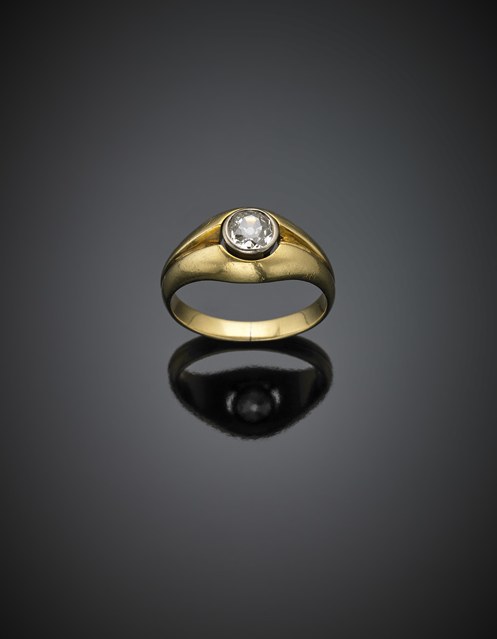 Yellow gold ct. 0.67 circa diamond gent's ring, g 9.22 size 55/52. (defects)
