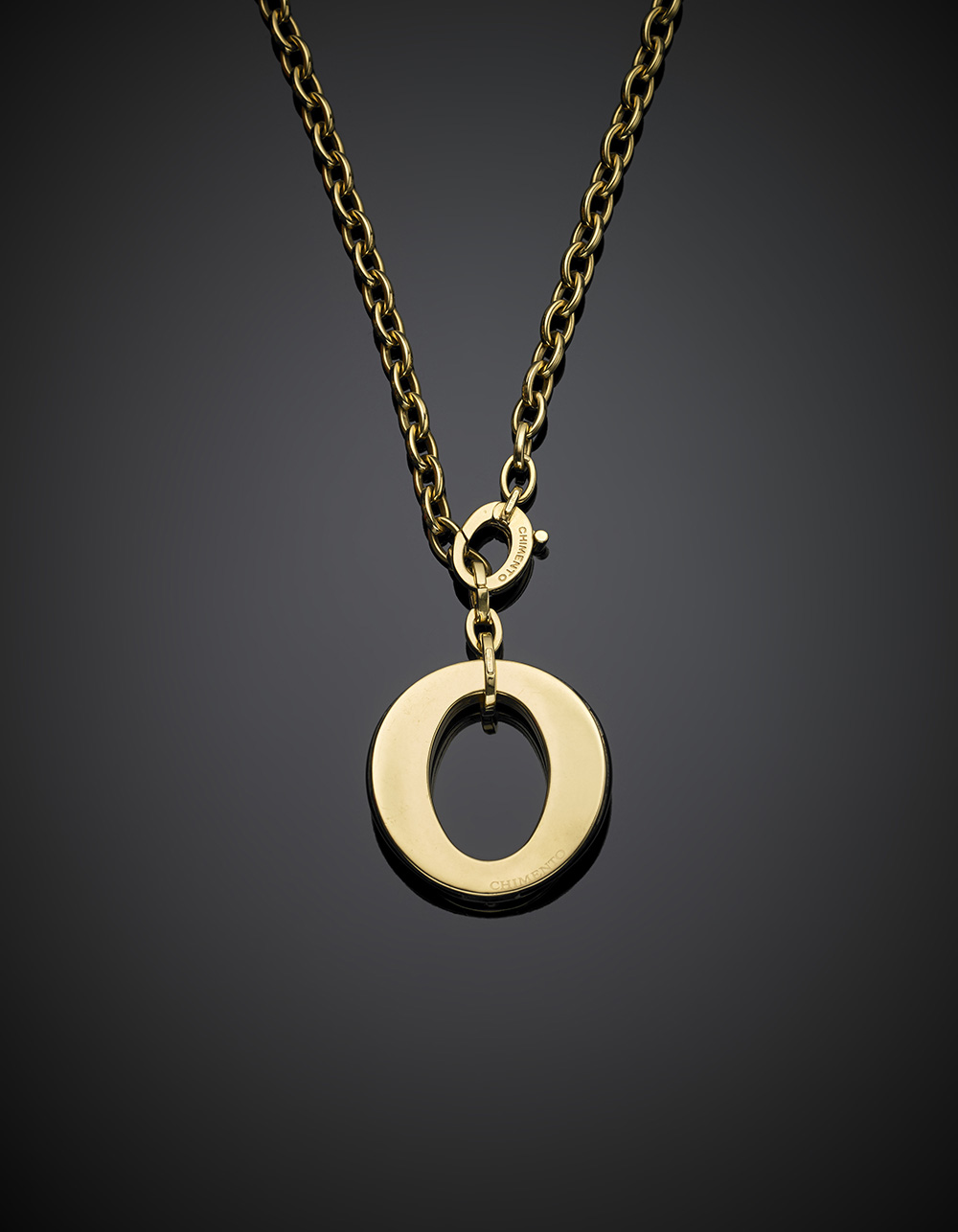 Yellow gold and onyx diamond accented chain with pendant, g 45.26, length cm 65 circa. Signed CHIMENTO, 408 VI.