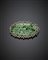 Broche ovale in oro giallo e argento, diamanti a mezza rosetta e al centro una giadeite scolpita e traforata, g 13,92, lungh. cm 5,30, h cm 3,10 circa. (difetti)