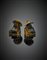 Due pendenti in oro giallo 585/1000 con occhio di tigre scolpito a guisa di...