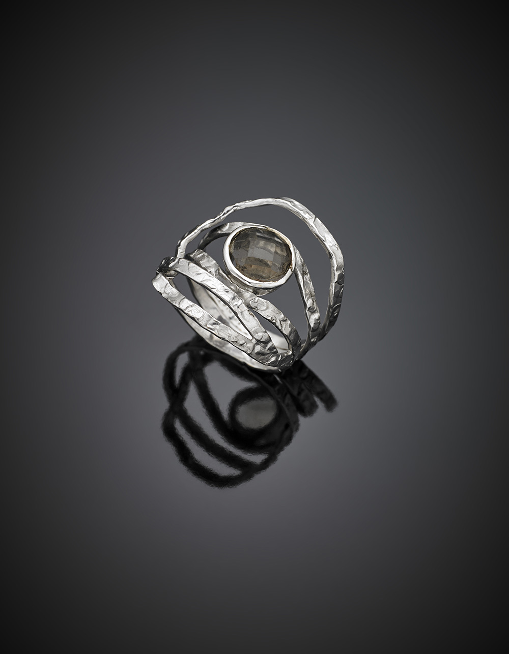 Lotto 1242 | A. MINOTTOAnello in oro bianco con quarzo rotondo a mezza rosetta, g 6,8...