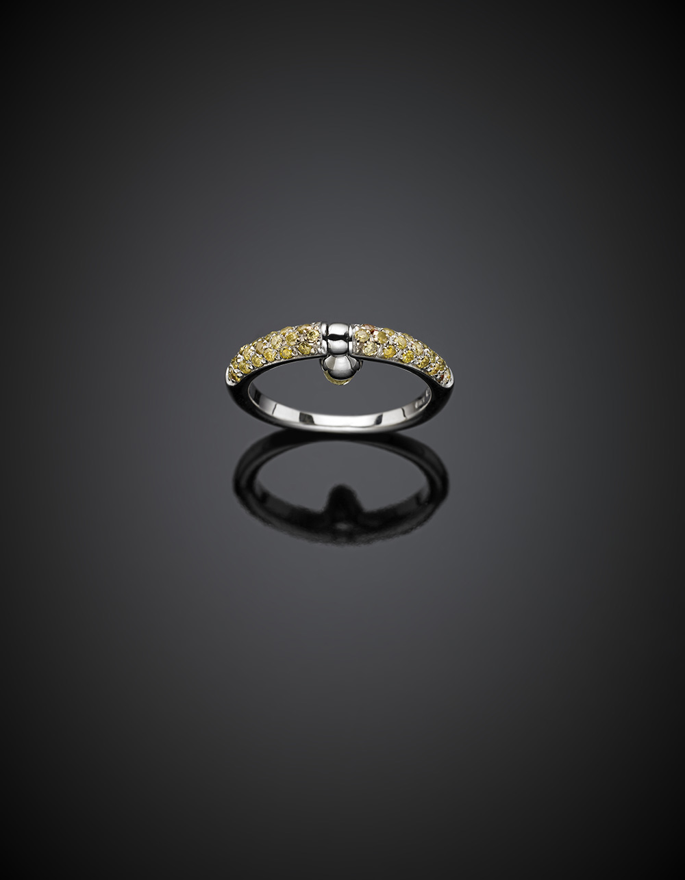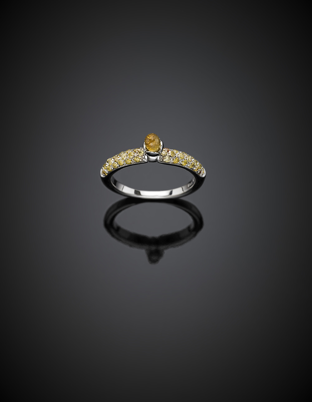 *DI GREGORIOAnello in oro bianco con pavé di diamanti yellow sul gambo per...
