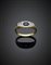 Anello in oro giallo e bianco cesellato con zaffiro ovale e due diamanti...
