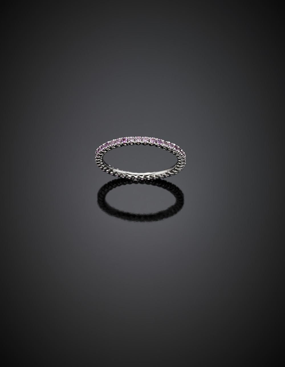 Lotto 1278 | *DI GREGORIOFedina eternity in oro bianco e zaffiri rosa per complessivi ct....