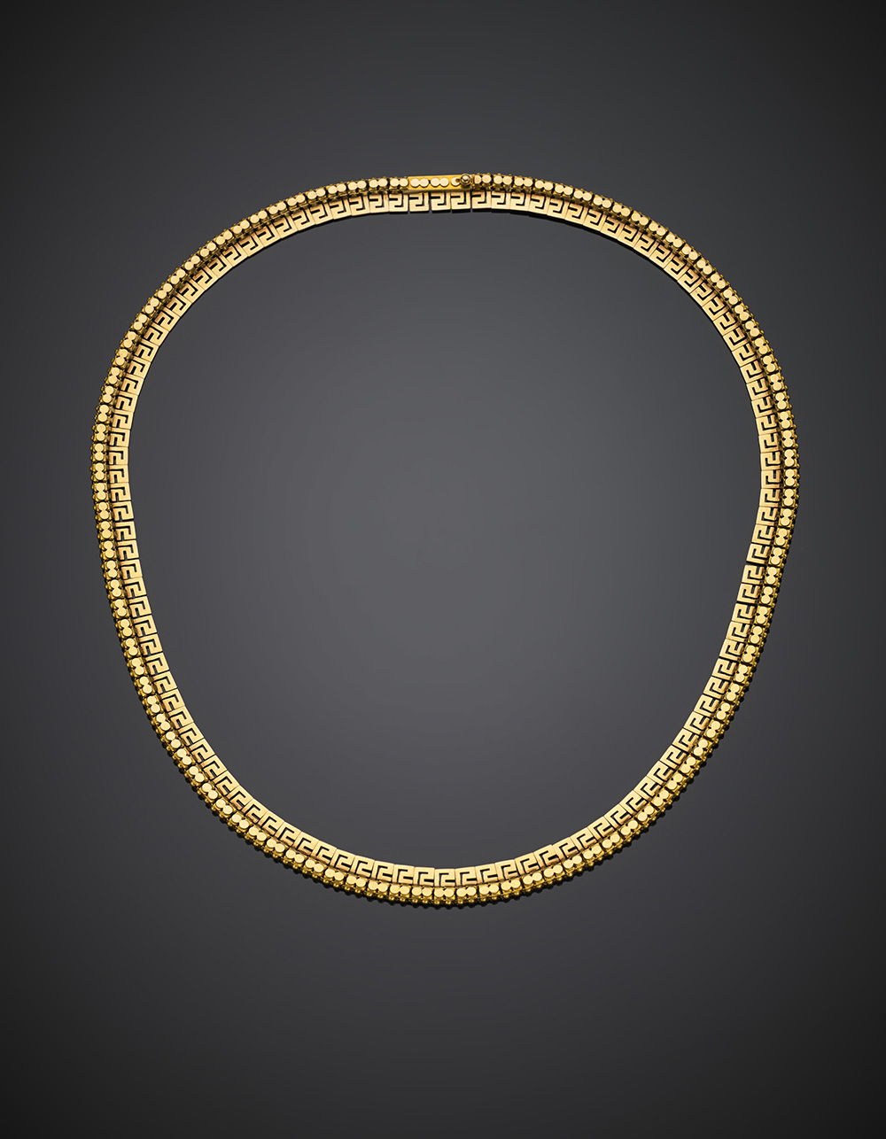 Collier in oro giallo a motivo geometrico, g 21,18, lungh. cm 44,50 circa.
