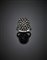 Anello in oro bianco e argento con pavé di diamanti a mezza rosetta, g 5,57...