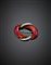 Spilla a nodo in oro giallo e bianco rifinita con smalto guilloché rosso e...