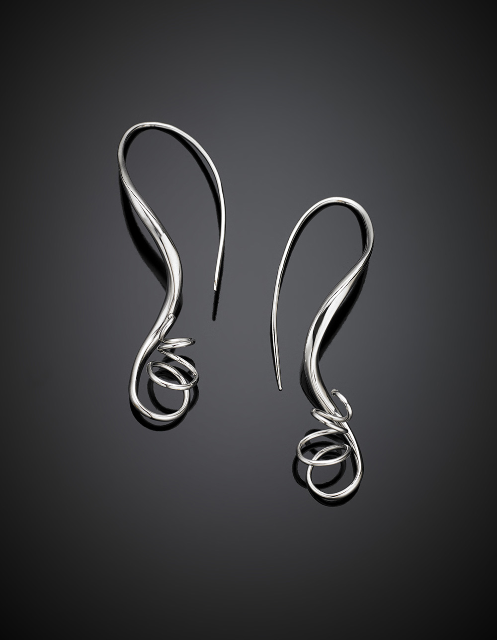 White gold wire pendant earrings, g. 6.10, length cm 6 circa.