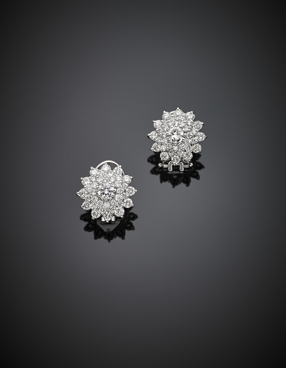 Diamond white gold cluster earrings, in all ct. 2.50 circa, g 4.78 size 2.2.
