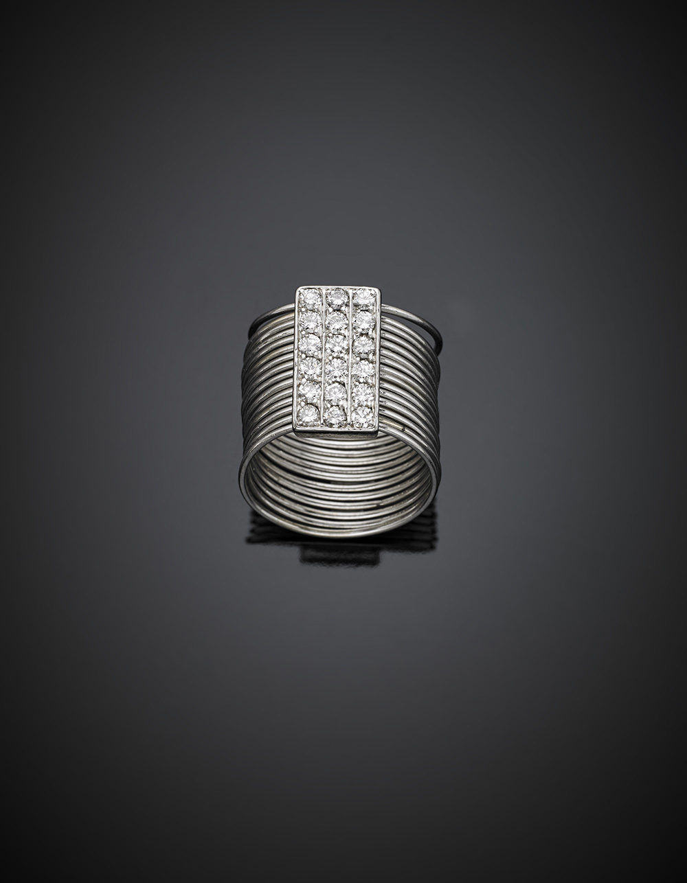 Anello in oro bianco multifili con pavè di diamanti g 7,33 misura 8/48.