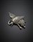 Spilla in argento e oro giallo rifinita con diamanti a mezza rosetta e perla a guisa di cigno, un rubino per l'occhio, g 7,81, lungh. cm 4,5, largh. cm 2,5 circa.