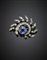 Spilla in oro bianco, diamanti per complessivi ct. 1,80 circa e zaffiro a...