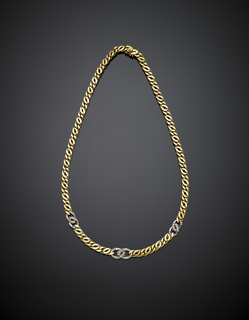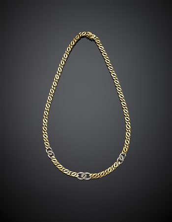 Collier in oro giallo a maglia rifinito con oro bianco e diamanti, g 49,22,...