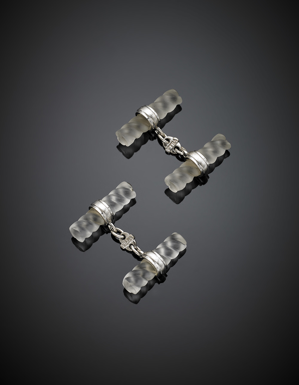 Hyaline quartz and white gold cufflinks, g 6.72, length cm 2 circa. Signed VILLA. In original box