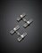 Gemelli in oro bianco e quarzo ialino, g 6,72, lungh. cm 2 circa. Firmato VILLA. In scatola originale