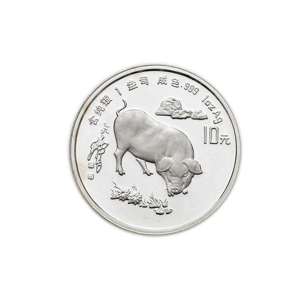 CINARepubblica Popolare.10 yuan 1995/Maiale. KM 745. AG. PROOF. In astuccio.