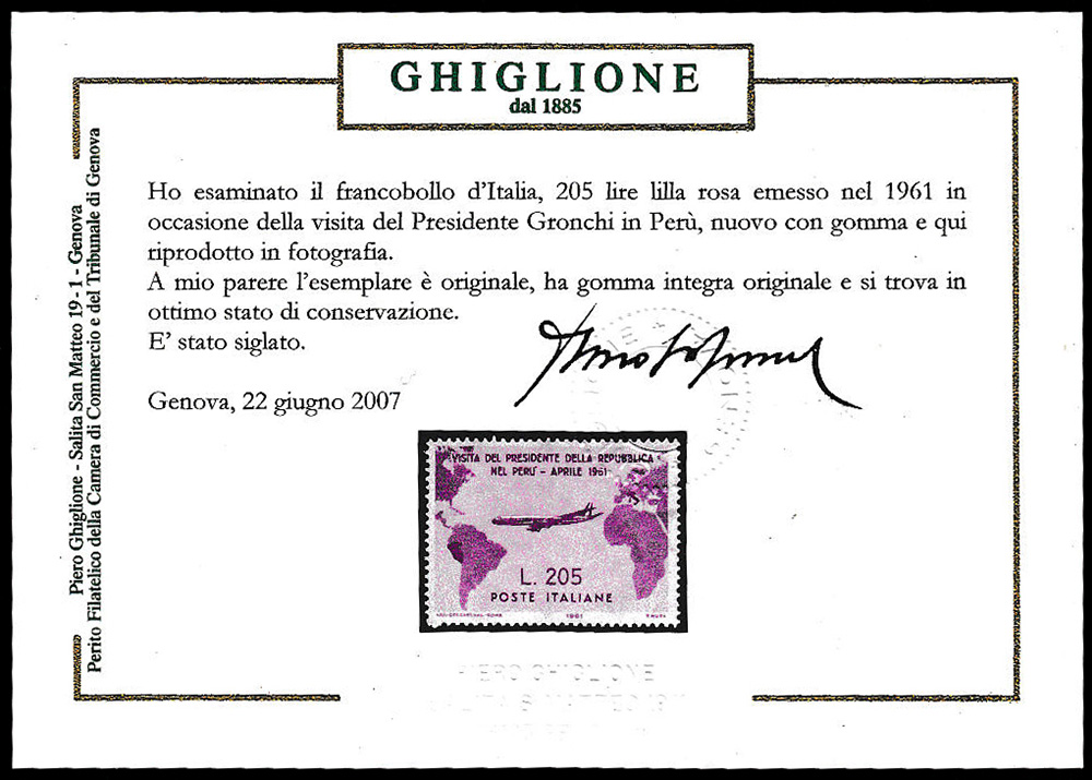 REPUBBLICA 1961205 lire "Gronchi rosa"Cert. GhiglioneMNH..........(Sass. 921)