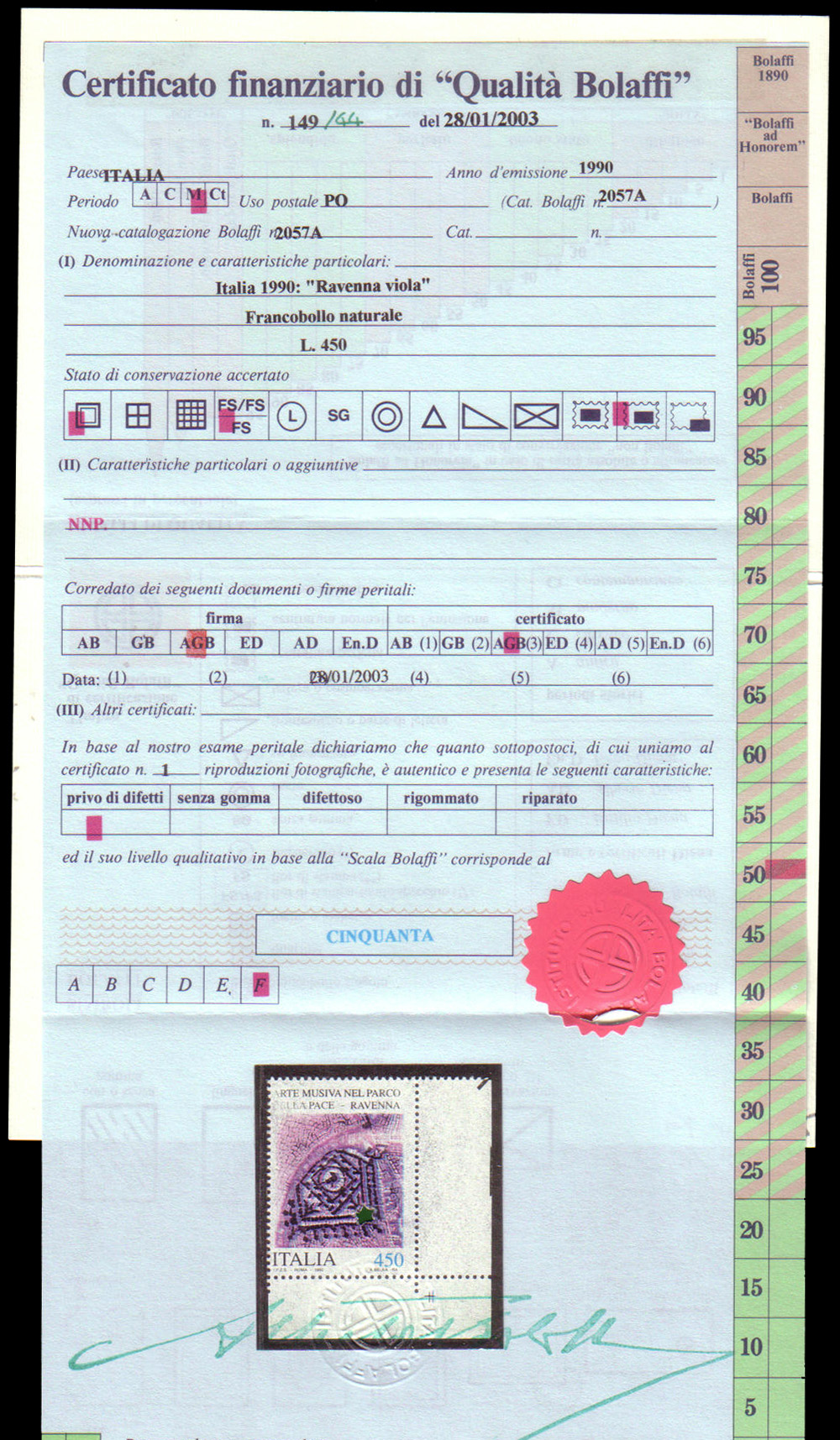 REPUBBLICA 1990Varietà. 450 lire "Ravenna viola"ProvenienzaCollezione...