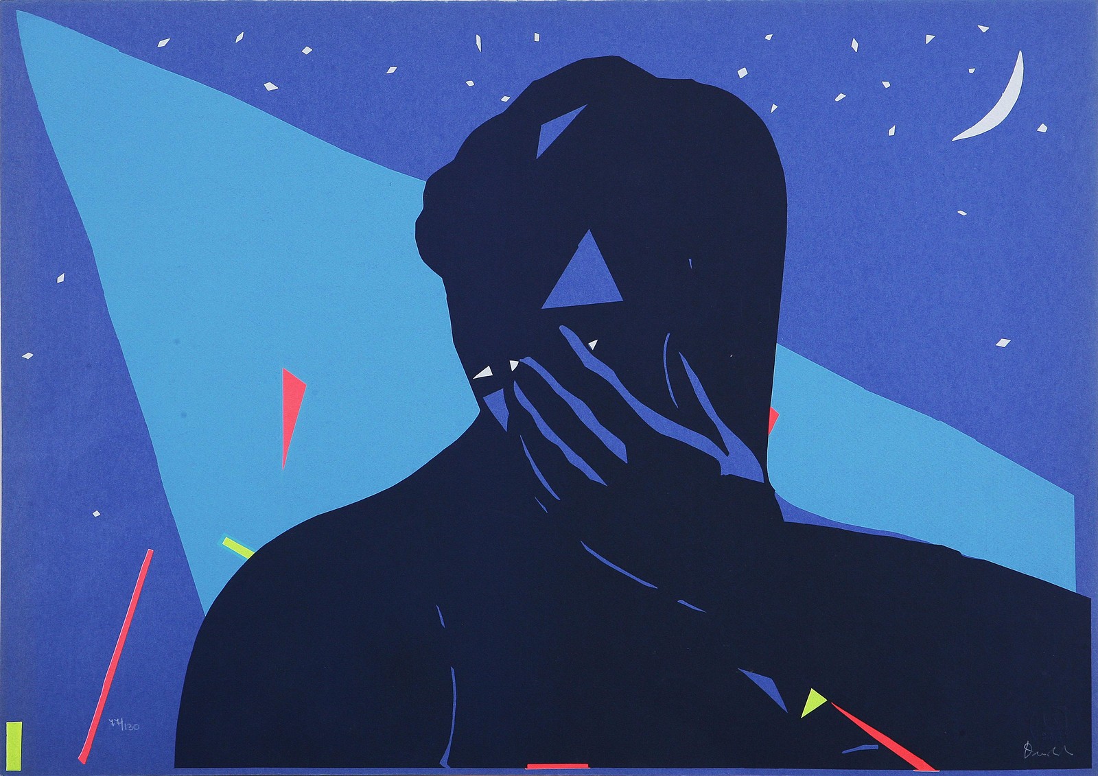 ANONIMO Senza titolo. Serigrafia. Cm 70x50. Tir. 77/130 a matita in basso a sinistra, timbro a secco in basso a destra Dialoghi Editore. Firma illeggibile a matita in basso a destra.