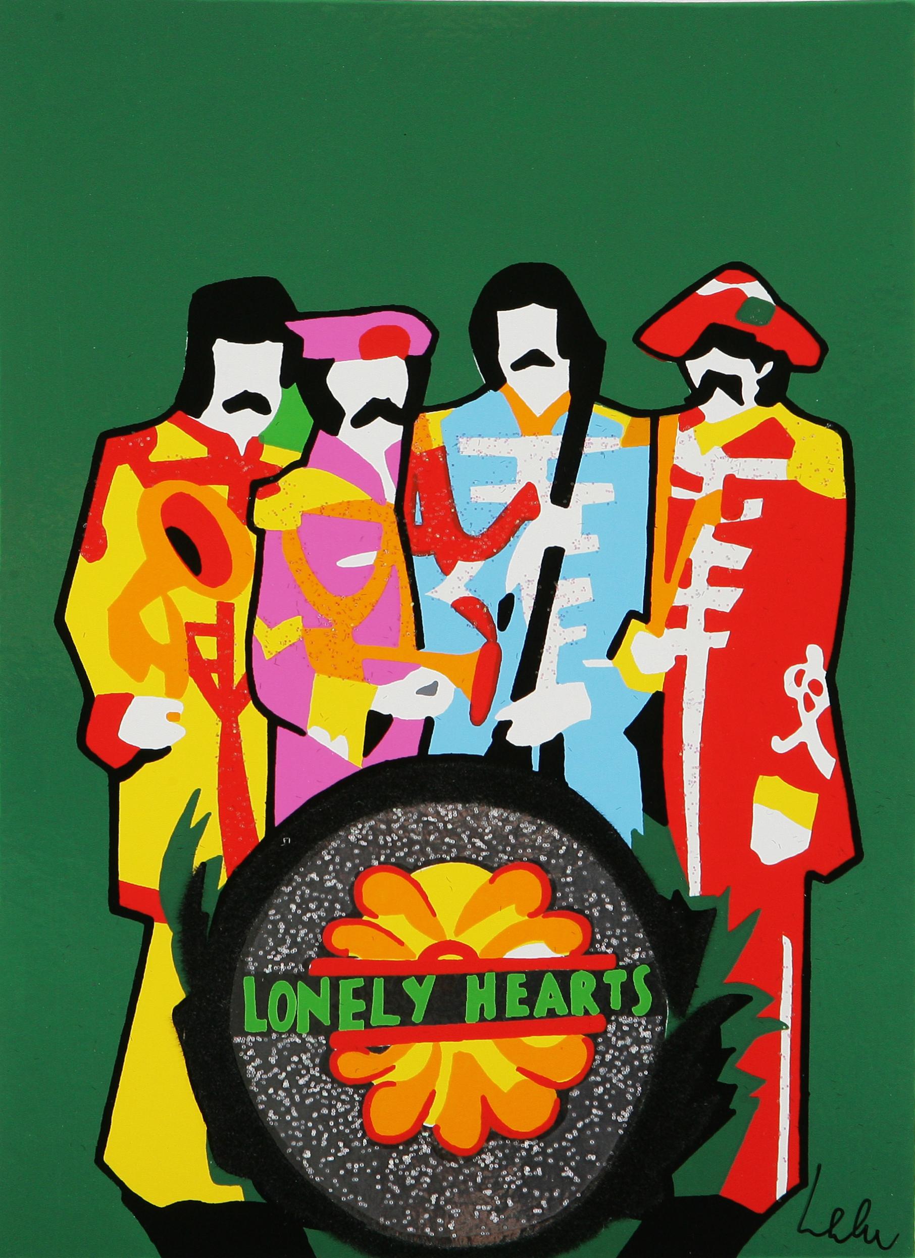 LODOLA MARCO (n. 1955) The Beatles. Serigrafia con floccaggio e brillantini. Cm 17x23. Firma in basso a destra.
