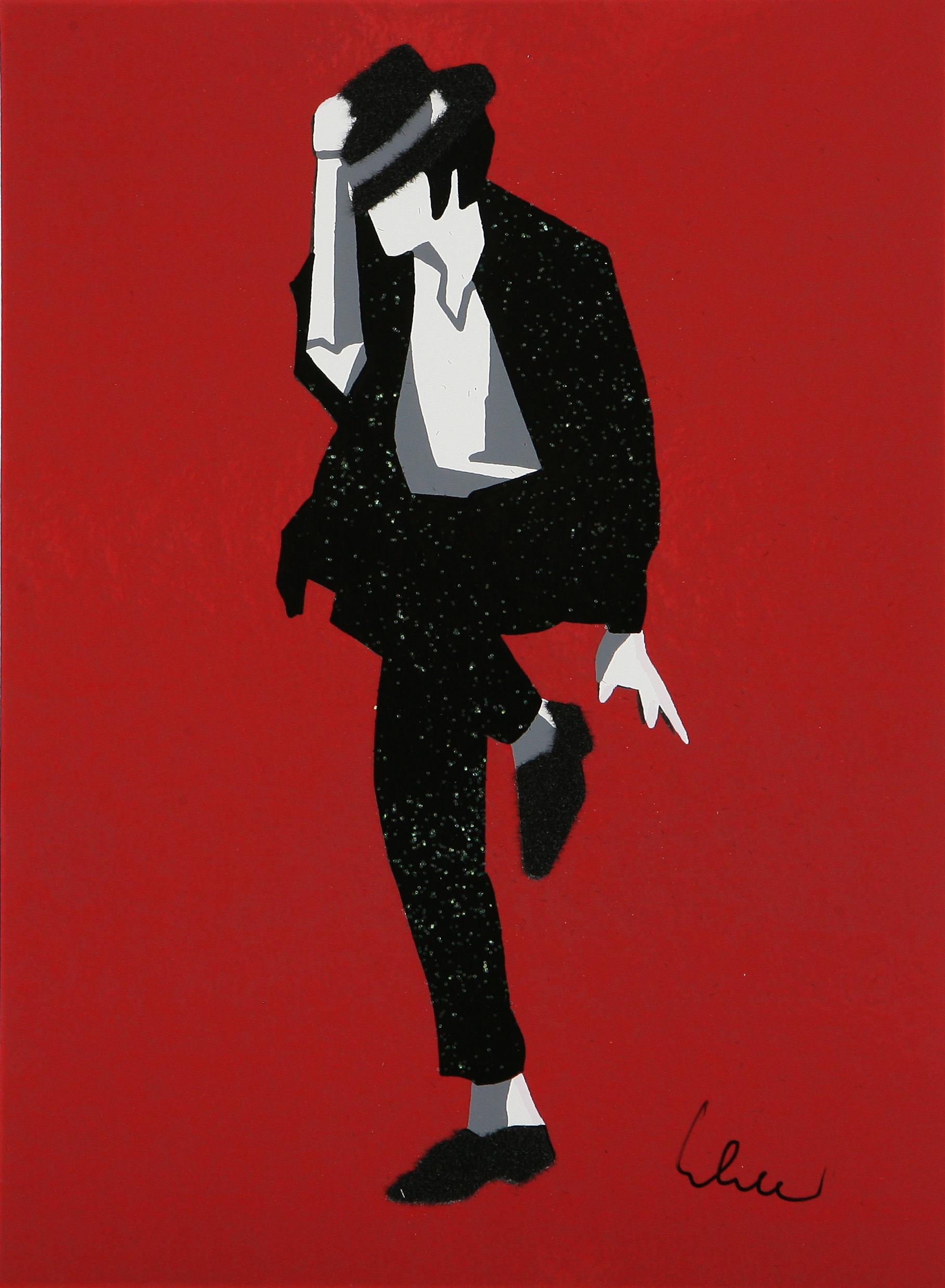 LODOLA MARCO (n. 1955) The popstar Michael Jackson. Serigrafia con floccaggio e brillantini. Cm 17x23. Firma in basso a destra.