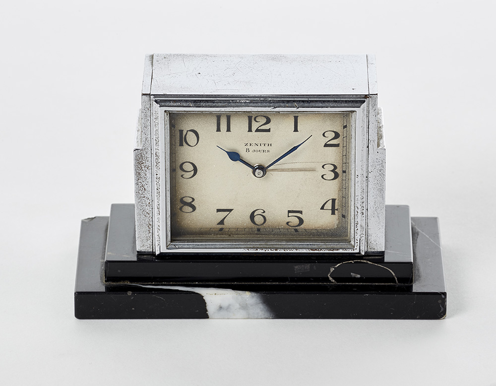 ZENITHOrologio da appoggio in acciaio nichelato con basamento in marmo...