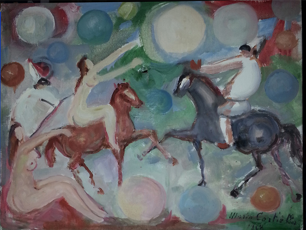 Mario Cortiello Napoli 1907 - San Sebastiano al Vesuvio 1981 I Cavalieri, 1968 olio su tela 30 x 40