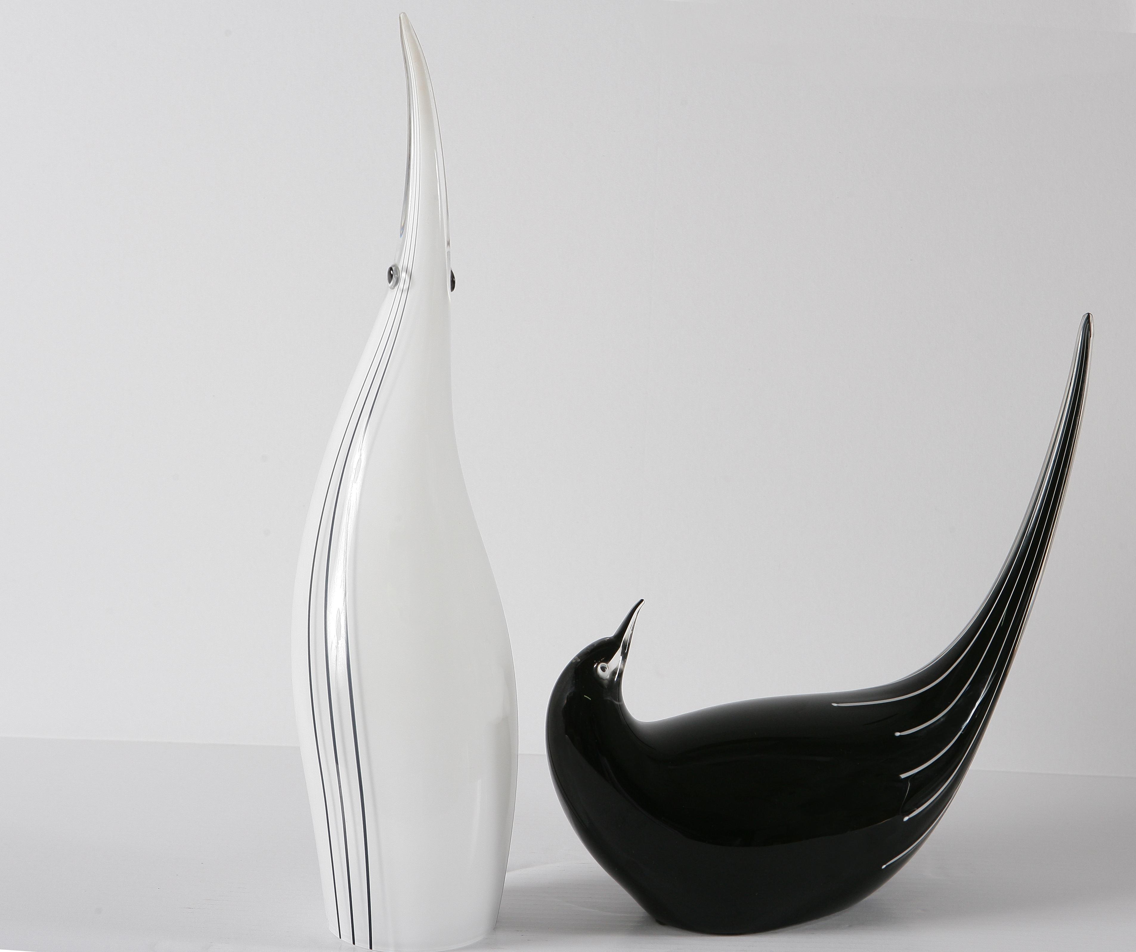 ANONIMO Lotto composto da due opere in vetro. Vetro. Pinguino bianco 40x12x12;Pinguino nero: 35x25x15.