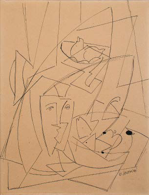 GINO SEVERINI Cortona 1883 – Parigi 1966 NATURA MORTA CON FIGURA IN GESSO, 1945/46 CIRCA china su carta, cm 21x27. Firmato in basso a destra: G. Severini. L’autenticità dell’opera è stata confermata da Romana Severini Brunori