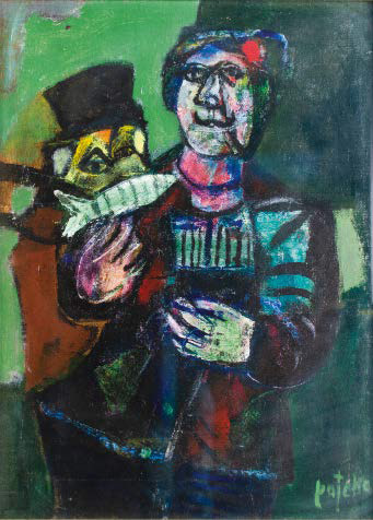 GUIDO PAJETTA Monza 1898 - Milano 1987 L’UOMO DEL PESCE, 1976 olio su tela, cm 80x60. Firmato in basso a destra: Pajetta. Timbro al verso: 0321. Bibliografia: E. Crispolti, Guido Pajetta. Catalogo generale ragionato dei dipinti, Volume secondo 1964-1987, Mazzotta, Milano 2009, n. 1976/41, p. 1093 (ill.).