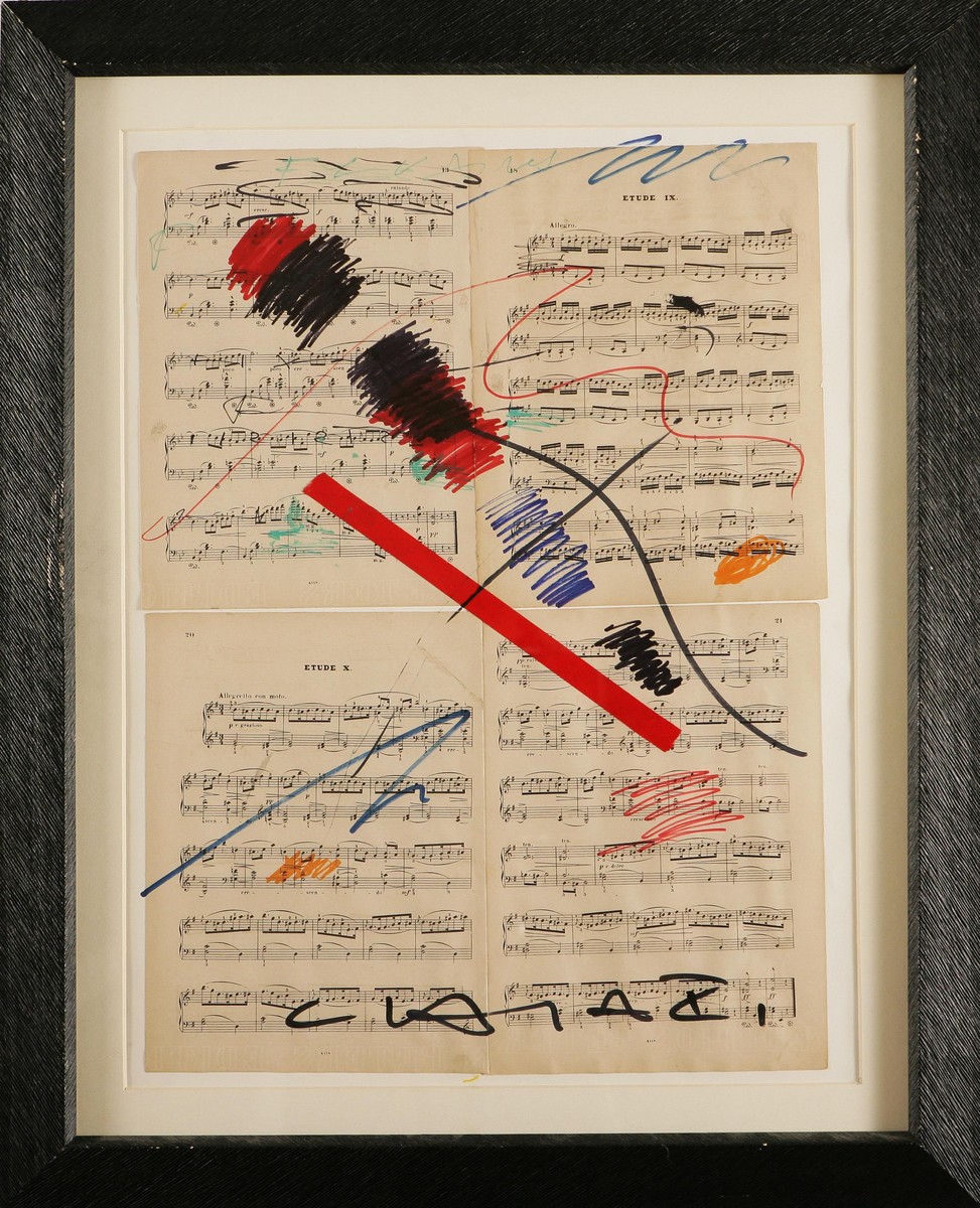 CHIARI GIUSEPPE (1926 - 2007) Spartiti 4. Collage su carta. Cm 50x70. Firma in basso al centro Cornice presente.