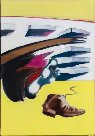 TINO VAGLIERI Trieste 1929 – Rivolta d’Adda 2000 AL CONFINE DELLA CITTA’ CASA PIEDE NUDO SCARPA CINTURA, 1972 olio su tela, cm 99,5x69,8. Firmato e datato in basso a destra: Vaglieri 72. Firmato, datato e titolato al verso: Al confine della città piede nudo scarpa cintura Vaglieri ‘72. Provenienza: Milano, Galleria delle Ore, n. 7818 (etichetta al verso). Opera accompagnata da autentica su fotografia firmata dal’artista.