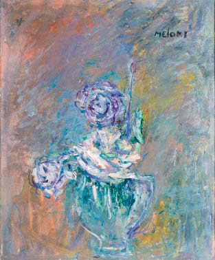 GINO MELONI Varese 1905 – Lissone 1989 ROSE NEL VASO DI VETRO, 1983 olio su tela, cm 61,5x50. Firmato in alto a destra: Meloni. Firmato, titolato e datato al verso: Rose nel Vaso di Vetro Meloni 83. Provenienza: Milano, Galleria Delle Ore, n. 13559/1204. Opera accompagnata da una dichiarazione di provenienza della Galleria delle Ore firmata da Giovanni Fumagalli.