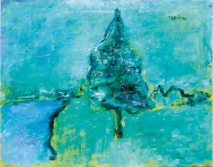 GINO MELONI Varese 1905 – Lissone 1989 PAESAGGIO, 1980 olio su tela, cm 65x81. Firmato in alto a destra: Meloni. Firmato, titolato e datato al verso: Paesaggio Meloni 1980. Provenienza: Milano, Galleria Delle Ore, n. 12197/1120 (etichetta al verso). Opera accompagnata da dichiarazione di provenienza su foto della Galleria delle Ore firmata da Giovanni Fumagalli