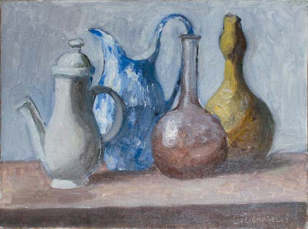 CRISTOFORO DE AMICIS Alessandria 1902 - Milano 1987 NATURA MORTA, POST 1982 olio su tela, cm 30x40. Firmato in basso a destra: C. De Amicis. Firmato al verso: C. De Amicis. Esposizioni: Milano, Galleria Gironda, Cristoforo De Amicis, 21 gennaio - 8 febbraio 1984. Bibliografia: E. Introzzi, P. De Amici, Cristoforo De Amicis. Catalogo generale, Ferrari Edizioni, Clusone 2003, n. 1480, p. 480 (ill.)