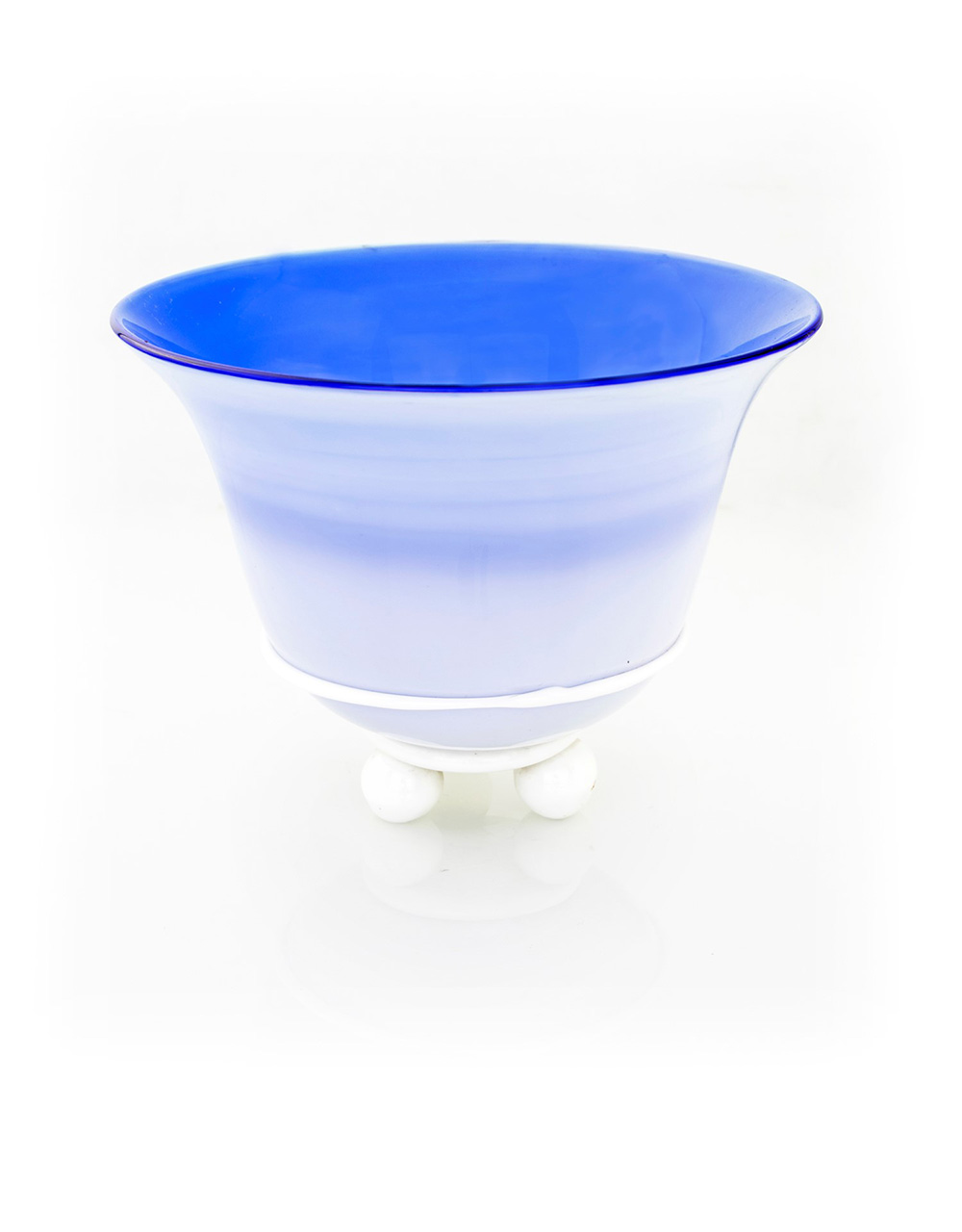 Coppa in vetro incamiciato opalino con piedini applicati in pasta di vetro...