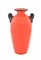 Vaso in vetro rosso con profilo e anse scultoree in forma di conchiglia in pasta vitrea nera. 1970 altezza cm 26