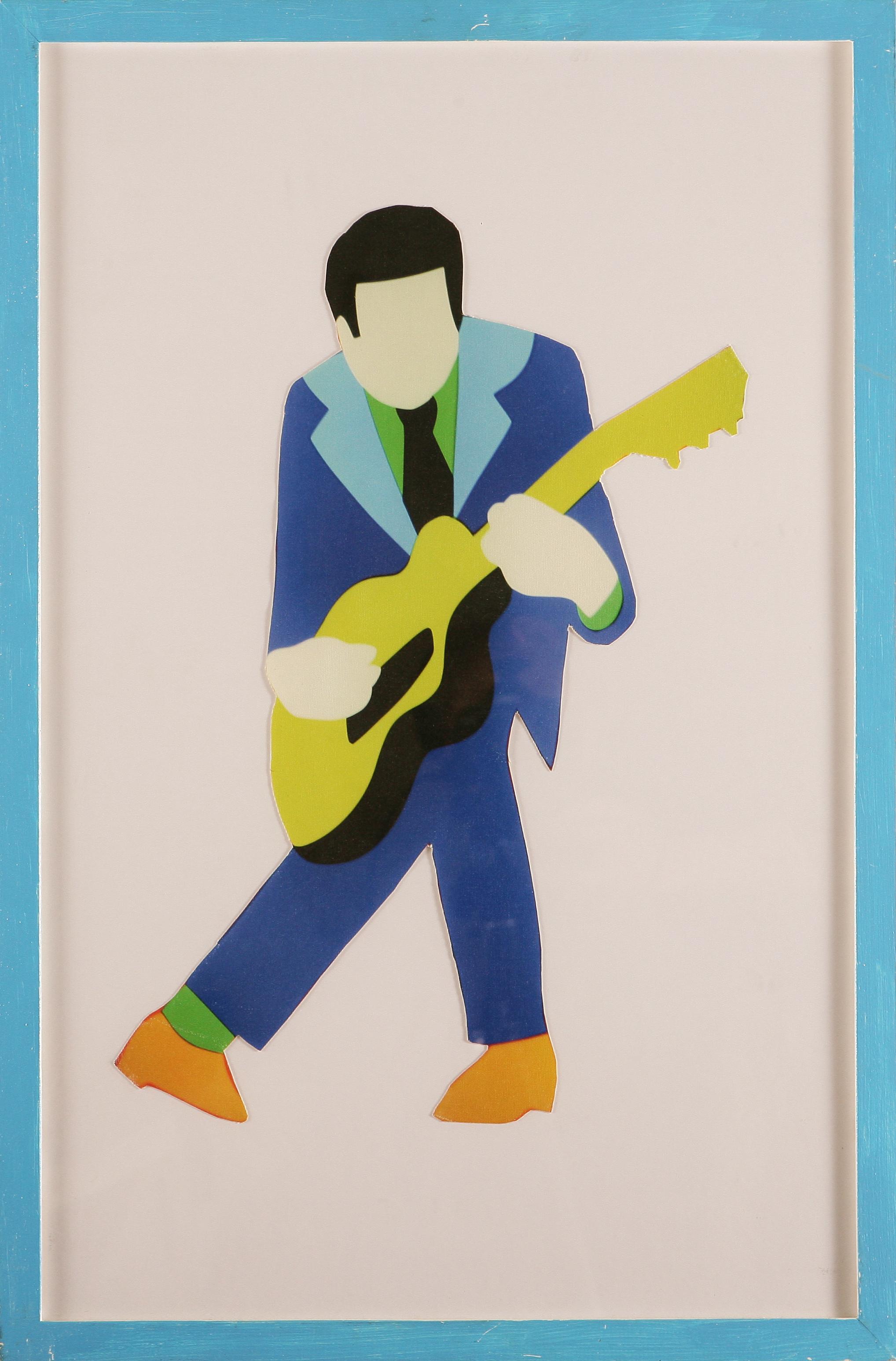 LODOLA MARCO (n. 1955) Chitarrista. Collage su carta. Cm 48x74. Al retro...